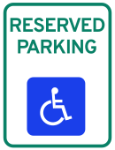 Should be used for reserving parking spaces for persons with disabilities in both parking lots and street parking. Featuring bold green text on a white background and utilizes the international symbol of accessibility to capture attention from a distance and help everyone, regardless of language, understand that the spot is reserved.